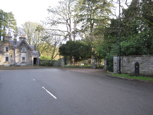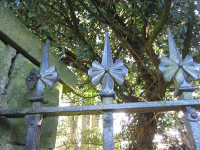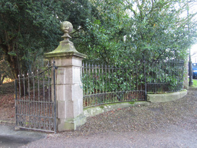 This formal quadrant gateway forms an attractive grouping with the gate lodges and main entrance to Castle Leslie. The entrance group terminates the vista at the end of Glaslough's main street and sets the architectural tone for the demesne and country house beyond. The walls and gates are well crafted with good detailing and the railings and gates are further enhanced by the accomplished casting, especially of the twisted elements and the decorative finials.
