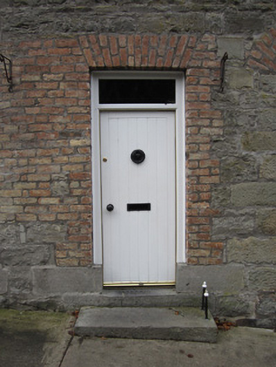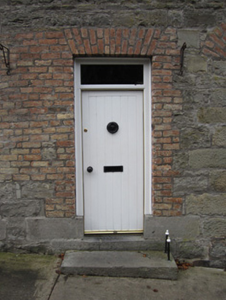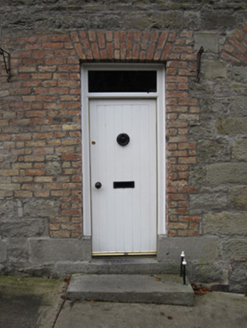This good-sized town house was formerly a pair, one having a carriage entrance, and of a type familiar in Irish country towns. The contrast between limestone and red brick is pleasant, as is that between rubble and cut limestone. The retention of timber sash windows and of a battened vehicular door enhances the building, and the bootscrape is a pleasant and somewhat rare survival.
