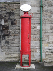 These obsolete petrol pumps are a reminder of the earlier history of road transport. Their very different forms contrast pleasantly. While evidently utilitarian and of technical importance, they are nevertheless visually interesting examples of street furniture, and make a pleasant contribution to the historic fabric of Glaslough village.