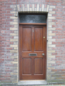 Terraced two bay three-storey house, built c.1830, with single-bay two-storey return to rear. Pitched slate roof with red brick chimneystack having stepped cornice and terracotta pots, and cast-iron rainwater goods. Red brick walling to front elevation, laid in Flemish bond, with yellow brick block-and-start quoins and surrounds to openings. Smooth rendered walls to rear and return walls. Square-headed window openings with replacement uPVC windows, and stone sills. Square-headed door opening with yellow timber panelled door and overlight. Fronts directly onto street. Outbuildings to rear concealed by random rubble wall with square-headed door openings. House constitutes one of a terrace of eight identical houses.