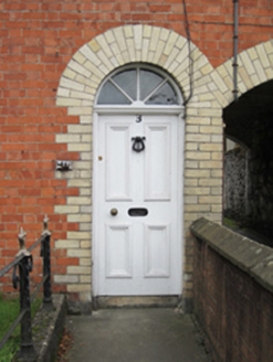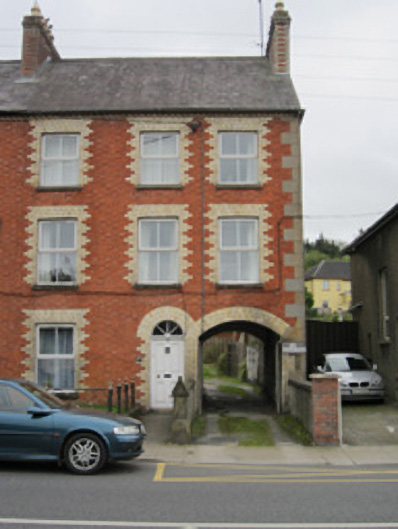 This fine red brick house is part of an impressive terrace on the road into Monaghan Town from Derry. The terrace constitutes a fine example of the type of housing built beyond the immediate centre of Victorian towns around the turn of the nineteenth century and survives in good condition. The use of polychrome brickwork adds a degree of contrast and artistic embellishment to a building built for practicality and to alleviate the overcrowding of town centres during this period. The archway, leading to outbuildings behind, was typical of country towns. The small front garden, with good cast-iron railings, provides a pleasant setting.