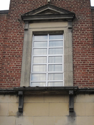 This sprawling building retains a coherent architectural character which is kept legible and relatively uncluttered by the broadly symmetrical arrangement of the main central block and its two flanking wings. The angled plan of the building is perfectly suited to maximise the passive solar lighting of patient rooms, facilitates bright, sheltered recreation areas on the covered terraces and enables multiple access doorways that are relatively sheltered instead of being exposed on a large monolithic elevation. The architectural expression focused on the main entrance building is most impressive and fuses traditional finely executed ashlar stone work with brick in a complex arrangement of projecting and recessed elements that gives the whole building in a strong identity.