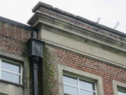 Multiple-unit brick building of between one and three storeys with total of twenty-six bays across central south-west facing block, flanking eight-bay wings angled to north and south ends of central block and eleven-bay extension to north-east containing main entrance façade, built c.1937-1943, to designs by Belfast architect Cormac MacLynn. Central five-bay section has flanking two-bay blocks on either side which project from central section. Cast concrete canopies over terraces on front elevation of building create sheltered open recreation areas and bowed ends to wings provide scope for extensive windows to light indoor sun-rooms. Roofs are hipped with black clay ridge tiles and slate cladding with a small number of simple brick chimneystacks having upended brick decoration and over-sailing moulded concrete cappings. Most front elevations and many to rear have parapet gutters drained by cast-iron hopper heads and circular downpipes, with half-round, cast-iron rainwater goods everywhere else. Walls are of brick laid to English garden wall bond with some un-bonded stretcher brickwork to prominent parapets on breakfronts and projecting bays. Parapets have plain concrete coping slabs with some ashlar stone dressing, notably in moulded cornice which surmounts breakfront on main central block and on entrance façade. Square-headed window openings with moulded concrete sills and replacement uPVC frames throughout with round-headed exceptions on stairwells. Almost all window openings have moulded or simple Bath stone, concrete or brick surrounds depending on prominence of each elevation. On south-east façade of main entrance building is generously proportioned five-bay, two-storey composition with slightly projecting central pyramidal-roofed tower rising to three storeys over main entrance doorway. Rest of roof is hipped with un-bonded stretcher brick parapets and end bays extending beyond eaves to create flat-roofed square projections. Upper stage of central tower has four narrow windows beneath full moulded render entablature, with single large square-headed window to first stage having Bath stone pediment, cornice of which is supported by two scrolled consoles. Moulded cement sill course, supported by two moulded stone brackets on central window, and ashlar Bath stone platband beneath this demarcate ground floor of building. This is faced with ashlar Bath stone to central three bays with only brick used on canted ground floor bay parapets. These bay windows flank central square-headed main entrance doorway with cut limestone lugged architrave, overlight with metal fish-scale decorative grill over glass and double-leaf panelled timber doors in chamfered and carved timber frame. Windows to end bays have ornate carved Bath stone surrounds with concrete cornices and sills. Part of Saint Davnet's hospital complex, building stands in extensive grounds, fronting onto lawned area with mature trees sheltering main façade from Monaghan Town.
