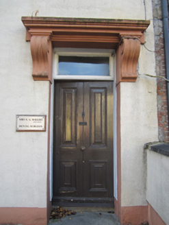 Terraced two-bay two-storey house with dormer attic, built c.1870. Now in use as dental surgery. Pitched slate roof, with smooth rendered chimneystack, and cast-iron rainwater goods. Smooth rendered walling with painted plinth course. Square-headed window openings, with rendered architraves and keystones, stone sills, and two-over-one pane timber horned sliding sash window to ground floor, and replacement uPVC windows to first floor. Segmental-headed dormer window opening to roof with replacement timber window. Square-headed door opening, with rendered architrave, moulded cornice supported on scrolled console brackets, and having timber panelled door with overlight. Fronts onto North Road, bounded by smooth rendered boundary wall with concrete coping to north.