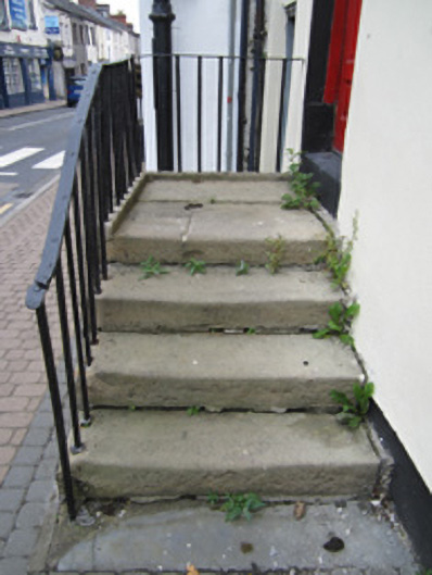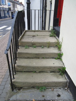This is one of the more modest street houses in Monaghan Town, but it retains much of its early character through the retention of timber sash windows of varied types. Its integral accessway leading to the backlands is a typical feature in provincial towns. The flight of well wrought sandstone steps and landing is an attractive element that highlights the topography of the street.