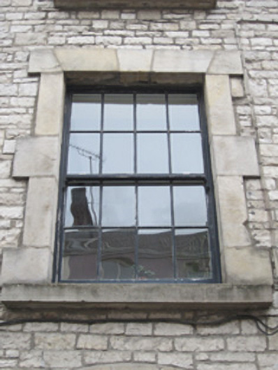 This building displays an interesting contrast between its carefully fitted rubble limestone walls and cut sandstone dressings. The large eight-over-eight pane windows and somewhat undersized doorway are attractive features. The shopfront cleverly reuses a former carriage archway and is attractive in its own right.