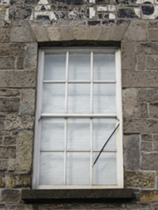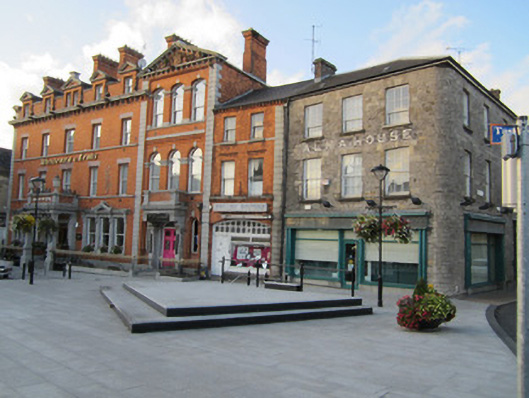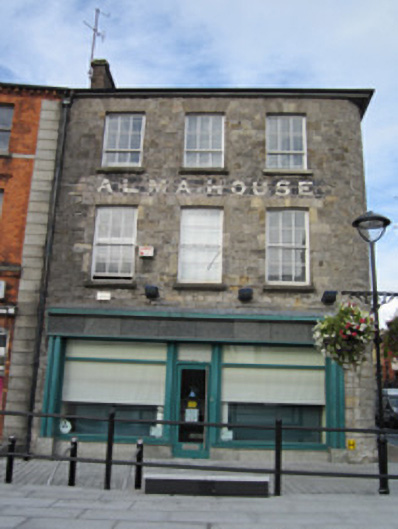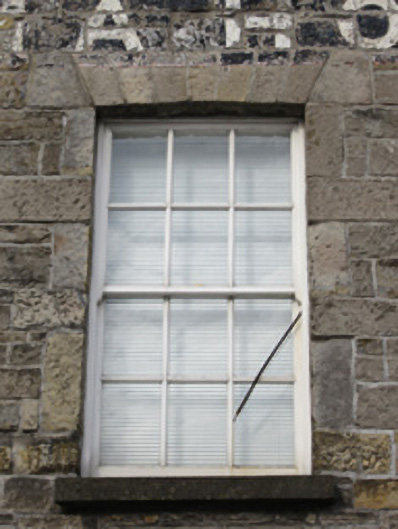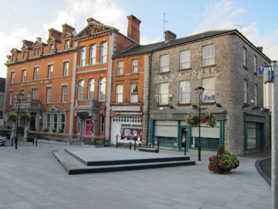 This building is distinguished by its dressed limestone walls, contrasting dramatically with the red brick of the buildings to the west on the Diamond. The rounded corner is an attractive feature that softens the corner in what is a particularly prominent place in the town centre. The building retains timber sash windows.
