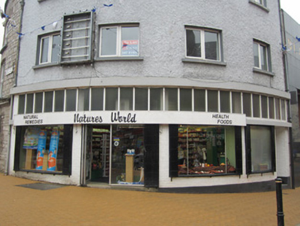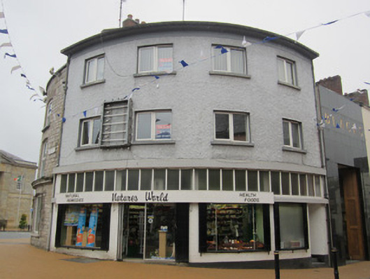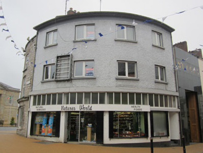 Corner-sited end-of-terrace three-bay three-storey house, built c.1830, rounded to south-east corner, and having recent dormer attic, built c.1830. Now in use as apartments. Recent mansard roof partially hidden by parapet, with red brick chimneystacks, and replacement rainwater goods. Roughly dressed rubble walls built to courses, with moulded stone cornice to ground floor. Camber-arch openings, having dressed voussoirs to lower floors, dressed stone lintels to top floor, with stone sills and replacement uPVC windows and doors.