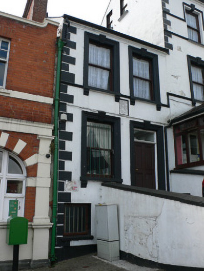 This modest house may well be the oldest house in Clones, dating from 1725. It was apparently rebuilt in 1887 and it is likely that much of the early eighteenth-century fabric survives. The moulded surrounds to the openings, which enhances the building, probably dates to the latter period when it and its neighbour were combined to make one house, albeit with two doorways.