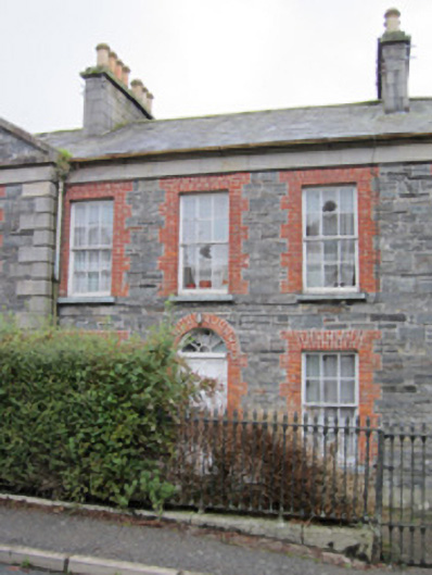 Terraced three-bay two-storey former almshouse, dated 1847. Part of row of four almshouses. Pitched slate roof with grey clayware ridge tiles, ashlar sandstone chimneystacks with polygonal terracotta pots, and replacement rainwater goods. Squared coursed limestone walling with sandstone eaves course and chamfered sandstone plinth. Square-headed window openings with red brick block-and-start surrounds and voussoirs, and timber sliding sash windows, six-over-six pane to front and mixed six-over-six and six-over-three pane to rear, with stone sills. Round-arch door opening with red brick block-and-start surround and voussoirs, timber panelled door with spoked timber fanlight, and flagstone door-step with cast-iron boot-scraper. Toilet to rear having concrete walls and lean-to corrugated-iron roof. Shared garden to rear. Set back from street, with garden to front bounded by railings and pedestrian gate of cast-iron on chamfered sandstone plinth.