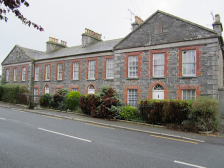 Terraced three-bay two-storey former almshouse, dated 1847. Part of row of four almshouses. Pitched slate roof with grey clayware ridge tiles, ashlar sandstone chimneystacks with polygonal terracotta pots, and replacement rainwater goods. Squared coursed limestone walling with sandstone eaves course and chamfered sandstone plinth. Square-headed window openings with red brick block-and-start surrounds and voussoirs, and timber sliding sash windows, six-over-six pane to front and mixed six-over-six and six-over-three pane to rear, with stone sills. Round-arch door opening with red brick block-and-start surround and voussoirs, timber panelled door with spoked timber fanlight, and flagstone door-step with cast-iron boot-scraper. Toilet to rear having concrete walls and lean-to corrugated-iron roof. Shared garden to rear. Set back from street, with garden to front bounded by railings and pedestrian gate of cast-iron on chamfered sandstone plinth.