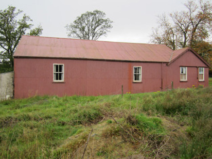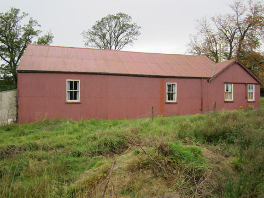 Detached single-storey corrugated-iron hall, built c.1930, comprising three-bay block, with second block to north gable end and flush with same and presenting gable-fronts to long elevations that to west being three-bay and that to east two-bay, and with lower lean-to additions to south-west and south-east corners. Now disused. Pitched corrugated-iron roof with decoratively carved timber bargeboards to gables with pinnacles and finials, and cast-iron rainwater goods. Corrugated-iron sheeted walls on concrete foundations. Square-headed window openings with two-over-two pane horned timber sliding sash windows with timber sills. Square-headed door openings with battened timber doors. Set within grounds of former Fair Field country house. Gateway and gate lodge immediately to north.