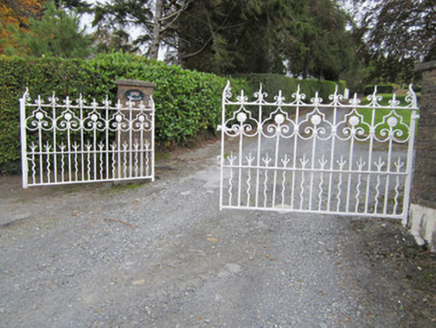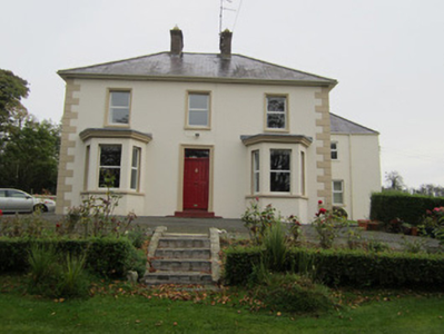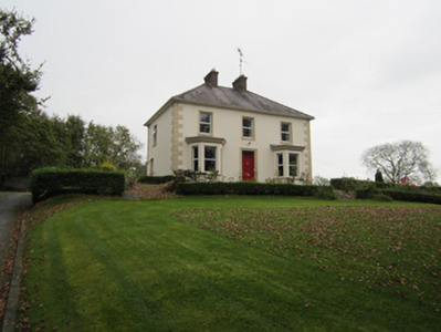 Detached three-bay two-storey house, built c.1890, with single-storey canted bay windows to ground floor, two-storey return, and two-bay two-storey extension perpendicular to house at rear. Hipped natural slate roof with grey clayware ridge tiles, cat-slide roof to rear incorporating return, centrally placed fired red brick chimneystacks with terracotta pots, and cast-iron rainwater goods. Flat lead roofs with moulded corniced eaves to canted bay windows. Smooth rendered walls with painted block and start quoins. Square-headed window openings with moulded render surrounds to first floor, replacement uPVC windows, and painted sills. Square-headed door opening with moulded render surround, overlight and replacement timber door. Set within own grounds with wrought-iron gates mounted on smooth rendered gate piers giving access from to south of property. House is one of three out-of-town Victorian dwellings on Monaghan Road. Single-storey outbuilding with stone walls and pitched slate roof adjoins rear extension.