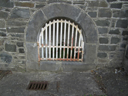 Water fountain or well, inserted or incorporated c.1880 into retaining wall to west of former Ballybay railway station. Round-arched opening with dressed chamfered surround and plinth, with rubble walling to interior of niche, and hinged wrought-iron gate to front. Sited to north-east of Ballybay town centre.
