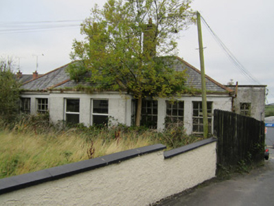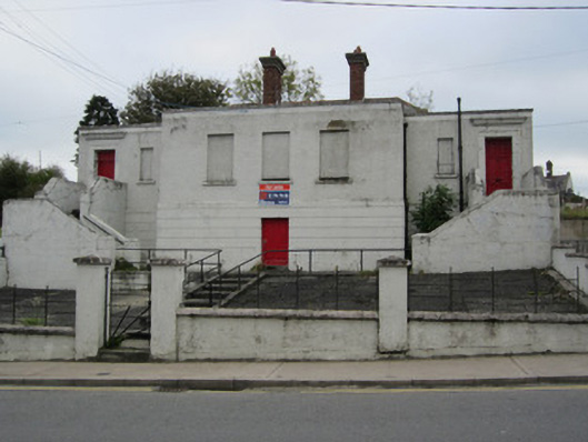 Freestanding seven-bay two-storey former clinic, built c.1935, with projecting middle bays to front and rear. End bays accessed at first floor level by external stairs with rendered parapets, and with centrally placed entrance door at ground floor. Hipped slate roof to rear portion with terracotta ridge tiles, paired centrally placed red brick chimneystacks with stepped cornices, and with flat roof to front having rendered parapet. Cast-iron rainwater goods. Smooth channelled rendered to ground floor, roughcast to first floor and to rear elevation. Square-headed window openings to first floor front, now boarded up, with painted sills. Square-headed window openings to earlier section at rear having six-over-six pane and one-over-one pane timber sliding sash windows. Square-headed door openings with render architraves, moulded cornices, and timber panelled doors to end bay openings, central door boarded up. Set back from Main Street, Ballybay with concreted forecourt, rendered boundary wall and piers surmounted by Art Deco-style railings of wrought-iron.