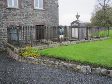 Freestanding grave monument, erected 1841, by John Sheill to the memory of his wife, Olivia. Comprises brick core with outer faces of slate, with moulded cornice, moulded frame to front with inscribed marble inset. Stone urn to apex of front, with garland and flame-lime detail. Monument has smooth-rendered brick base and is enclosed by cut-stone plinth with cast-iron railings.