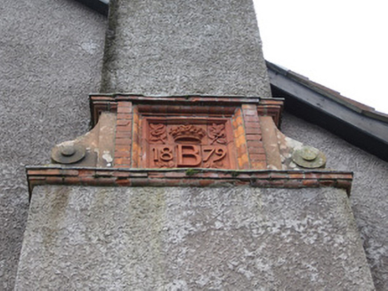 This house forms part of an eye-catching terrace of five former almshouses prominently sited in lawned gardens at the main southern approach to Castleblayney. Strong attention to detail is evident throughout, with high-quality brickwork, brick details, decorative terracotta work. The design included double-light windows to the front which have been carefully framed within decorative brick pilasters. The placement of the chimneystacks, halfway down the front roof slope, is unusual.