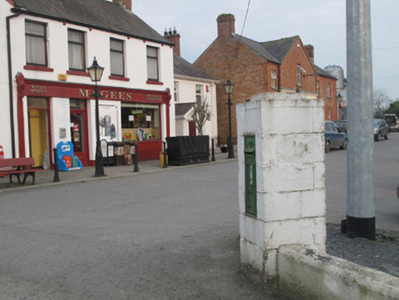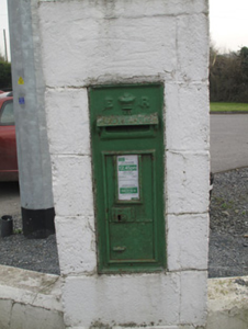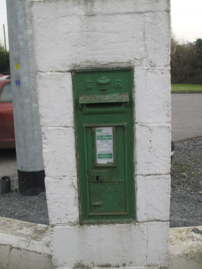 This post box is an example of mass-produced cast-iron work, with raised insignia enhancing the modest design of the piece. The royal cipher and crown motif are of special interest, constituting a physical reminder of the relationship between Ireland and the British Empire. Many pre-Independence post boxes were simply repainted green and retained this royal insignia, those with that of Edward VII being quite rare given the shortness of his reign.