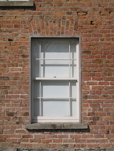 Terraced two-bay split-level house, built c.1880, comprising two-storey to front (south-east) elevation and single-storey to rear (north-west) elevation. Part of terrace of six. Pitched slate roof having clay ridge tiles and shared red brick chimneystack with clay chimneypots and replacement steel rainwater goods. Red brick walls laid in English garden wall bond having cast-iron wall-tie to front and coursed rubble limestone to base of wall to rear. Gauged-brick square-headed window openings with render reveals, tooled limestone sills, and side-margined two-over-two pane timber sliding sash windows. Gauged brick square-headed door opening to front having render reveal and double-leaf timber battened door.