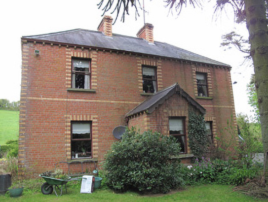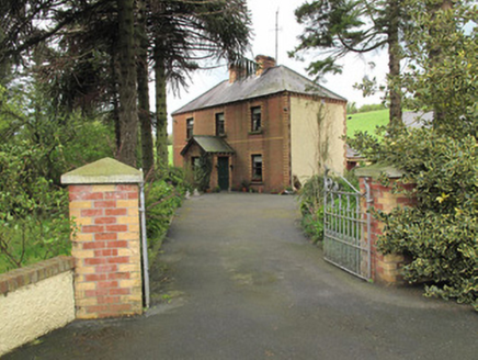 This modestly-proportioned house is enhanced and enlivened by polychrome-brick detailing in its quoins, surrounds, and eaves course. Its polychrome-brick chimneystacks are of local interest, being almost ubiquitous in this part of County Monaghan. Decorative timber bargeboards to the front porch add further interest also. The house is representative of the continuing popularity of classically inspired modest domestic architecture.