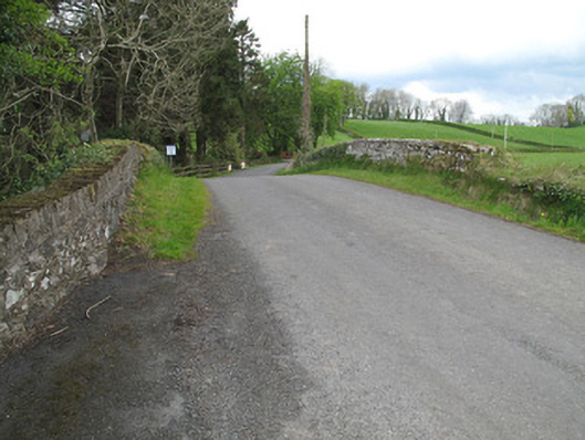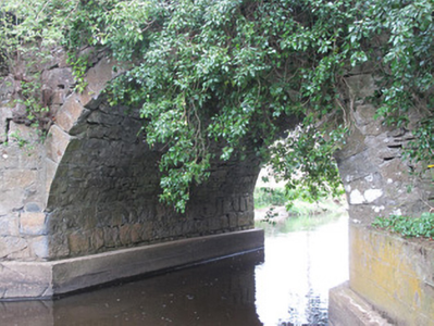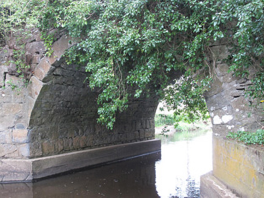 Double-arch bridge, built c.1800, carrying road over River Blackwater. Round arches having tooled sandstone voussoirs. V-shaped tooled squared stone cutwaters to each elevation. Central pier and abutments reinforced with concrete. Coursed rubble stone to soffits. Coursed roughly-squared rubble stone to spandrel and abutment walls. Coursed rubble stone to parapets, with squared stone capping.