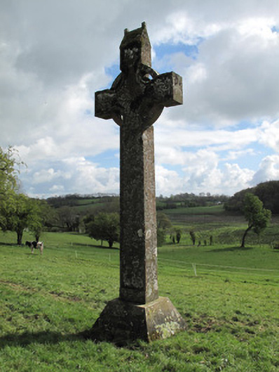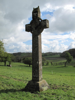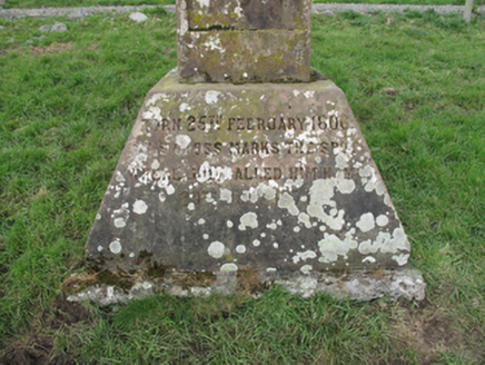 Freestanding sandstone cross, dated 1877, with ringed cross and rectangular-plan shaft, having moulded edges to front and rear faces (south-east and north-west), and truncated pyramidal base having inscription to front, and cap being gabled oratory-like detail.