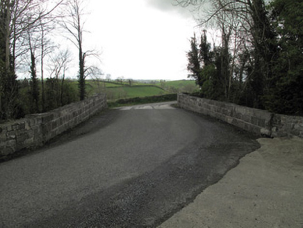 Single-arch railway bridge, built c.1860, carrying road over Portadown and Cavan Branch of the former Ulster Railway. Triple-centred arch with rock-faced rusticated sandstone voussoirs and dressed sandstone soffits. Rock-faced rusticated sandstone buttresses flanking arch to each elevation. Rock-faced rusticated spandrel and abutment walls, having tooled sandstone plat-bands at impost level and to base of parapet wall. Squared stone parapet walls, re-pointed to interior, with tooled stone copings.