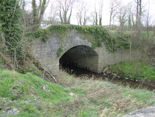 Single-arch road bridge spanning River Blackwater, constructed c.1820, now disused. Ashlar limestone walls, with splayed abutment walls. Ashlar masonry spandrel and parapet walls having tooled granite coping, sloping to meet ground at sides. Segmental arch, with splayed barrel vault to intrados of arch, and ashlar granite voussoirs. Wide carriageway approached from east and west. Situated parallel to late twentieth-century bridge to south.
