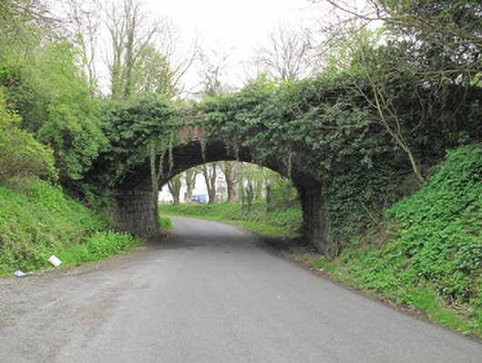 Single-arch railway bridge, built c.1860, carrying road over Portadown and Cavan Branch of Ulster Railway. Segmental arch having rock-faced rusticated and margined sandstone voussoirs and cut-stone soffits. Splayed wings terminating in projecting piers to abutments, random rock-face rusticated stone to spandrel walls, parapet walls, abutments and wings. Rock-faced rusticated platbands at impost level and to base of parapets. Dressed limestone parapet walls with pointed capping.