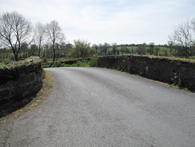 Single-arch canal bridge, built c.1840, carrying road over now disused Ulster Canal. Round arch with dressed sandstone voussoirs and cut sandstone soffits. Curved wing walls to north of east and south of west wall. Squared random rubble sandstone to spandrel and parapet walls, dressed stone copings to parapets having inscribed benchmark to coping to west, dressed stone platband to base of parapet wall. Towpath running to south, with tooled stone curbing. Dressed stone milepost to north-west of bridge, inscribed face to canal.