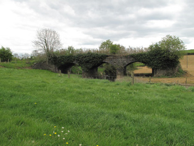 Triple-arch railway bridge, built c.1860, carrying Portadown and Cavan Branch of Ulster Railway over River Finn. Outer arches dry. Segmental arches having rock-faced rusticated and margined stone voussoirs, cut-stone soffits, and with U-shaped cutwaters to central piers. Tapered projecting buttresses and curved wing walls to abutments to each elevation. Coursed rock-faced rusticated stone to spandrel walls, parapet walls, abutments and buttresses. Dressed limestone platbands at impost level and running over arch-rings. Dressed limestone coping to parapets and wing-walls.