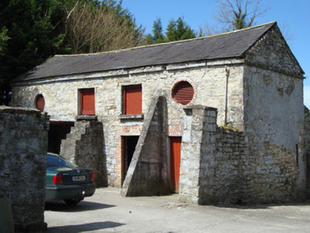 Detached three-bay two-storey over basement former rectory, built c.1792, with two-bay side elevations, projecting gabled porch to front elevation, and with later additions to rear (north). Now in use as private house. Hipped slate roof with two rendered chimneystacks having octagonal-plan terracotta chimney-pots, and with cast-iron rainwater goods. Roughcast rendered walls with segmental-headed recessed panels to ground floor, and with limestone plinth course over basement. Square-headed openings with replacement uPVC windows and painted limestone sills, with some three-over-three pane timber sliding sash windows to basement and two-over-two timber pane to basement level of porch. Porch has carved timber bargeboards with finial, Tudor-arch door opening with square-headed replacement timber door, sidelights and over-light. Low plinth wall to basement of south and east elevations, having moulded limestone coping to east elevation. Yard to north with four-bay two-storey outbuilding having pitched slate roof, remains of cast-iron rainwater goods, coursed rubble limestone walls and projecting eaves course, square-headed and round window openings to first floor, and square-headed door openings to ground floor with later gauged-brick door surrounds. Main entrance from west having lined-and-ruled square-plan piers with plinths, with large carved stone acorns, flanked by smooth rendered plinth wall with limestone coping. Steel vehicular gate and chamfered stone piers to east. Situated north of Ulster Canal and east of Saint Mollua's Church of Ireland church.