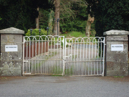 Detached three-bay single-storey L-plan former gate lodge, built c.1850, having lower gabled porch to front (south) elevation and twentieth-century extensions to north and east. Now in use as private residence. Pitched slate roof with terracotta ridge tiles, central red brick chimneystack, and replacement painted metal rainwater goods. Carved timber bargeboards and finials to gable ends and to porch. Exposed red brick walls of varying tones, with tooled limestone quoins. Square-headed window openings throughout, having limestone and sandstone block-and-start surrounds with chamfered reveals, and with replacement uPVC windows. Square-headed door opening to porch, having timber panelled door with chamfered limestone and sandstone block-and-start jambs and lintel. Gateway to west comprising square-plan cut limestone piers with moulded caps and double-leaf wrought-iron vehicular gate, flanked by low coursed rubble limestone plinth wall.