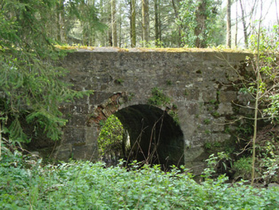 Rossmore Castle, now in the ownership of Coillte, is arguably one of the most interesting demesne complexes in County Monaghan, retaining gates and gate lodges, a mausoleum, walled garden, wells and a hydraulic dam. These three modest bridges form part of this collection of demesne-related features. They illustrate the development of the demesne, from the building of the country house, now demolished, in 1827, through the improvements made c.1858, to the time of the building of the Mausoleum c.1876. The bridges are well executed in locally quarried limestone, and are still used by Coillte traffic and members of the public walking in the estate.