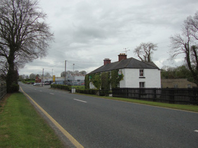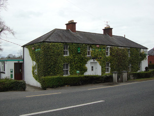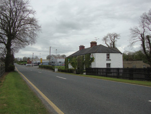 Detached five-bay two-storey house, built c.1800, having shallow windbreak to front elevation, and gabled return and flat-roofed extension to return, latter continuing beyond gable and in use as post office. Hipped replacement slate roof, having symmetrically-placed red brick chimneystacks, and replacement uPVC rainwater goods. Painted roughcast rendered walls, with rusticated quoins to east elevation. Square-headed window openings throughout, having two-over-two timber sliding sash windows to front, north and part of rear elevations, and replacement timber and uPVC casement windows to rear and to return and extension. Square-headed main doorway, with replacement uPVC door. Low rendered sandstone and limestone rubble boundary wall terminating in round-plan rendered gate piers with square-plan pointed stone caps and wrought-iron single-leaf pedestrian gate. Wrought-iron pedestrian gate accessing rear to north. Ancillary twentieth-century farm buildings to rear. Located adjacent to former Dublin to Derry road.
