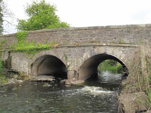 Double-arch bridge, built c.1810, carrying road over Finn River. Round arches with stepped dressed stone voussoirs and gunnelled soffits. Dressed limestone V-shaped cutwaters having rounded capping to each elevation of pier. Coursed squared rusticated stone to spandrels, roughly coursed squared stone to parapets with dressed limestone copings. Dressed stone string course to each elevation.