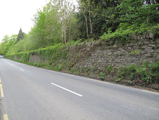 Demesne walls of Hilton Park, erected c.1800. Random rubble limestone walls with vertical stone coping.
