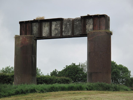 Seven-span railway viaduct, built c.1925, replacing earlier lattice girder bridge on braced metal trestles. Carriageway and abutments to either end now removed. Supporting columns extant, comprising paired riveted metal cylinders filled with concrete, metal casing removed from most columns. Reinforced concrete beam atop pair of columns to west.