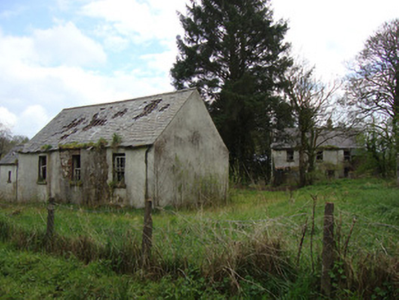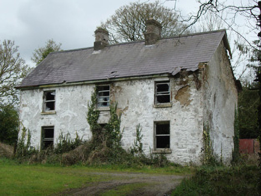 Detached three-bay two-storey house, built c.1850, now vacant, having lean-to porch to rear (north-west) elevation. Pitched slate roof, with paired red brick chimneystacks, cast-iron rainwater goods, and some timber bargeboards. Limewashed coursed rubble stone walls, roughcast render to rear. having brick eaves course and brick quoins. Square-headed window openings with brick block-and-start surrounds, one-over-one pane timber sliding sash windows, rendered reveals and painted stone sills. Square-headed door opening to front (south-east) elevation, not visible due to overgrowth. Gateway to road having square-plan rendered piers with steel gate, replacing wrought-iron double-leaf gate. Situated directly south of former Urcher school, with Cahans Presbyterian Church located one kilometre south.