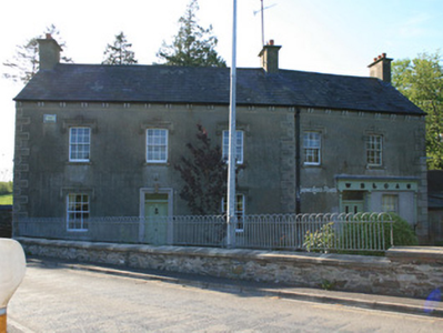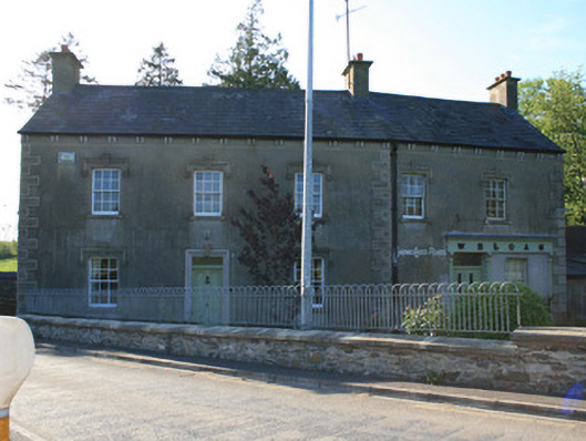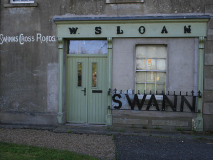 This aesthetically-pleasing building, formerly known as 'Swanns' and 'W. Sloan' functioned as the local post office and shop in the late nineteenth and early twentieth centuries. It is likely to have had a licensed premises, thus serving a number of important social functions for the local rural area. The symmetrical façade of the house is articulated by the margins and moulded surrounds of the windows and doors, and the former shop-front of Sloan's gives context to the former post office at this prominent intersection of the Ballybay to Newbliss, and Rockcorry to Monaghan roads. The railing to the shop window, composed of lettering, is an unusual and attractive feature. The attractive and rare example of slate hanging adds to the building's interest. The buildings formerly stood on 'Swan's Cross Roads' on the 1908 Ordnance Survey map but are now set back, with a roundabout to the south. The cross was named after the family associated with the post office at the turn of the twentieth century, indicating the important social role this building played in this rural community.