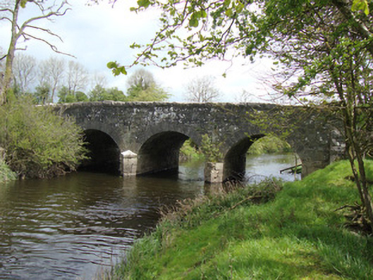 Located south-west of Ballybay, this bridge over the Dromore river is a landmark in this rural landscape. This well-executed stone bridge is a picturesque landmark on the river, employing local materials in its construction, with cut limestone to the voussoirs, soffits, spandrels, parapet wall and buttresses. That the bridge remains in use in its present form is testament to the quality of its construction.