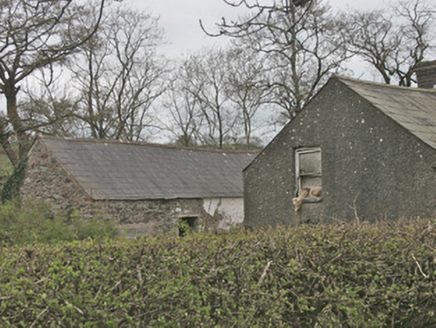 Detached four-bay two-storey vernacular house, built c.1850, now vacant, with farm buildings to west. Originally comprised of three-bay house, extended by one bay to south. Pitched natural slate roof, gabled to north and south, with clay ridge tiles, and cast-iron rainwater goods. Two red brick chimneystacks, on north gable end and at junction with extension to south. Roughcast rendered walls. Square-headed window openings, having one-over-one pane timber sliding sash windows, diminishing to first floor, with rendered reveals and painted stone sills. Breakfront to front elevation, rising to meet slope of roof as catslide. Square-headed door opening with replacement metal door, having rectangular paned coloured glass over-light. Two-storey farm buildings to west, having pitched slate roofs and exposed rubble and limewashed stone walls, square-headed openings and external steps to loft to north elevation of outbuilding. Wrought-iron traffic gate to south, hanging on one roughcast rendered round-plan gate pier with render conical cap. Located to west of Castleblayney to Keady road, south of Creaghanroe crossroads.