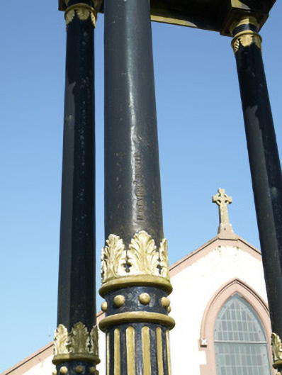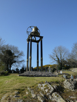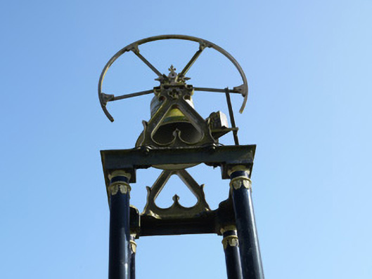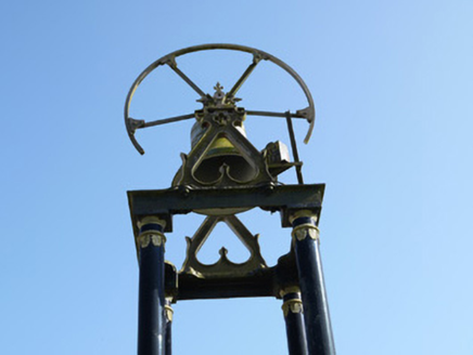 This bell stand has an elegant form and is located on an elevated site giving it an iconic presence in the local landscape. It is a twentieth-century addition to the grounds of the nineteenth-century Church of Saint Mary, dated 1812, the absence of a belfry being a common feature of early nineteenth-century Roman Catholic chapels built before Catholic Emancipation in 1829. Its addition serves as an interesting reminder of Penal restrictions when Roman Catholic churches were not entitled to have a bell for worship. This structure remains an important historical document and an integral icon of the architectural and social heritage of County Monaghan. A very similar bell stand, also fabricated by M. Byrne, can be seen at Saints Peter and Paul's Church at Drumgoosat, and further afield in Beragh, County Tyrone, Banteer County Cork, Ballynacarrigy County Westmeath and Holy Trinity Church in Newcastle-under-Lyme. M. Byrne stands for Matthew Byrne of the Fountain Head Bell Foundry Dublin.