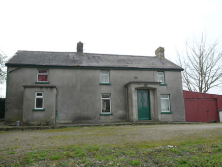 Detached two-storey house, built c.1820, having four-bay ground floor and three-bay first floor, two flat-roofed porches to front (east) elevation, southern bay being addition. Pitched slate roof with timber eaves, some cast-iron rainwater goods, and red brick chimneystacks. Cement render finish to walls, lined-and-ruled render to north entrance porch. Square-headed window openings with replacement timber casement windows, with painted masonry sills. Segmental-headed opening to north porch, having recessed square-headed door opening with half-glazed timber battened door. Square-headed door opening with timber battened door to side elevation of south porch. Single-storey lean-to garage attached to north end of house, with corrugated-iron cladding to walls and roofs. Evidence of former single-storey gabled structure to south gable. Set perpendicular to road. Site entrance has double-leaf metal vehicular gate flanked by rendered piers with matching pedestrian gate. Wrought-iron farm gate to south with round-plan cast-iron piers. Monument to Patrick Kavanagh at junction of this road and main road. Carrickmacross branch of Great Northern Railway formerly ran between house and main road.