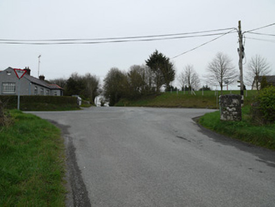 This post box is an example of the work of the London foundry of W. T. Allen & Co. The V R monogram and lettering enlivens the otherwise functional design. The royal cipher acts as a reminder of Ireland's colonial past. While providing an invaluable service to the local community the letter box displays both local and historic associations and adds interest to this rural crossroads. The stone pier is similar in character to many gate piers in the locality.