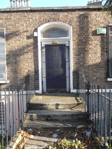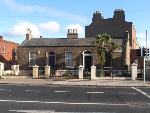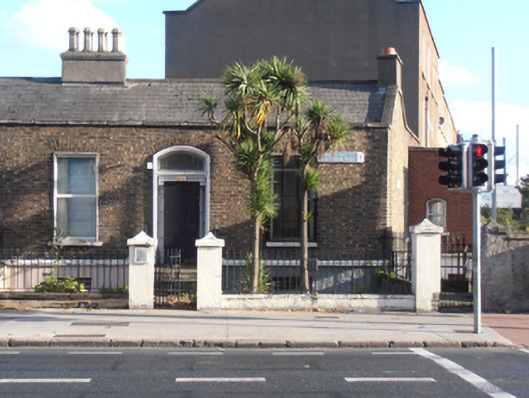Semi-detached two-bay single-storey house over raised basement, built c.1830. Scheduled for demolition in 2011. Double-pile pitched slate roof, rendered chimneystack at south gable and to centre, shared with neighbour to north, with yellow clay pots. No visible rainwater goods. Brown brick parapet with squared granite coping. Flemish bond brown brick walls with granite plinth course over rendered basement area. Square-headed window openings throughout having gauged brick voussoirs, patent rendered reveals, rendered sills and replacement windows. Camber-headed door opening with moulded render surround and doorcase comprising engaged pilasters with recessed panels terminating in foliate console brackets, surmounted by cornice and frieze with single-pane fanlight over timber panelled door. Door opens onto granite platform bridging basement area with granite stepped approach having wrought-iron handrails with spike finials and corner posts having urn finials. Located within own grounds set back from street with garden bounded by plinth walls surmounted by wrought-iron railings with spike finials. Rendered square-plan gate piers with triangular caps, holding wrought-iron pedestrian gate.
