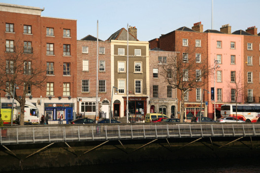 Bachelor's Walk was laid out c.1680 as an extension of Ormond Quay, with the building of residences starting in the early 1700s by wealthy merchants. This house is one of the few to survive the demolitions of the 1980s. Extensively remodeled by McCullough Mulvin Architects, the building retains its pinched fenestration suggesting a former gable-front. The house also retains a Victorian shopfront, an early roof profile and its overall external composition. The interior retains some early timber joinery including a rare closed-string dog-leg timber stair and corner chimneybreasts. Along with Nos.7, 8, 13 and 14, the retention of this house formed part of the recent reconstruction of Bachelor's Walk, which despite being a loose interpretation of the original, has managed to reinstate the rhythmic and vertical character of the quayside following half a century of dereliction.