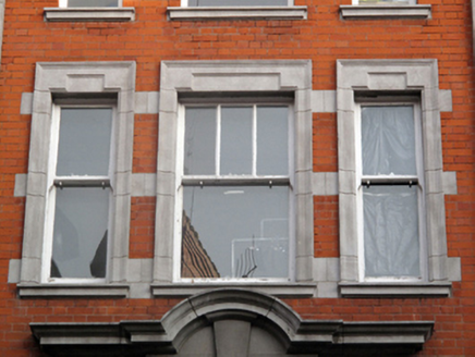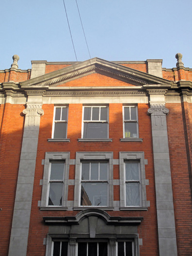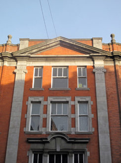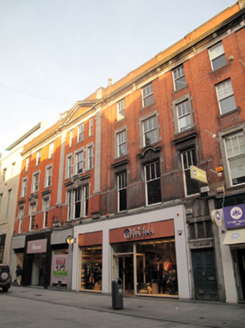 Like much of Henry Street, this building was reconstructed after the destruction which occurred during the 1916 Rising. Although it has been significantly altered due to the addition of recent shopfronts to the ground floor, the upper floors retain a stately and imposing façade, characterized by red brick and masonry pilasters, a central dentillated pediment and masonry window surrounds. The position and scale of this building, and its finely crafted masonry detailing make it a formidable and well-executed presence on the streetscape.