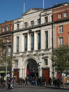 Commenced in 1919, the Grand Central Cinema was built on the site of the former Dublin Bread Company, boasting a grand interior and a teak foyer with hand carvings as well as a glass canopy over the entrance. The elongated first floor windows were originally occupied by two separate floors with independent fenestration. In 1923, only two years after its completion, a land mine explosion severely damaged the west façade. A fire also broke out in 1946 which gutted the interior, prompting the sale of the building to the Hibernian Bank in 1949. It has served as a bank since that time and today forms an impressive part of the bottom of O'Connell Street Lower near the River Liffey and the O'Connell Monument. Alternating on this block with red brick structures are Portland stone and granite buildings which, including the bank, are of similar massing and size, with a colonnade to the first floor, classical detailing and a modillion cornice. It is therefore part of a rhythmic streetscape and forms a contrast with the largely red brick flanking buildings. The building is quite dynamic with good detailing to windows, spandrels, and fluted architraves. It is well-executed and retains extensive original fabric, adding architectural interest to this end of the city's principal thoroughfare. The north end of O'Connell Street was laid out from 1749 by Luke Gardiner, with the narrow southern end connecting Gardiner's Mall to the Liffey, formerly known as Drogheda Street, widened at the end of the eighteenth century. The magnificent, axial thoroughfare was largely rebuilt in the twentieth century after the widespread destruction of the 1916 Rising.