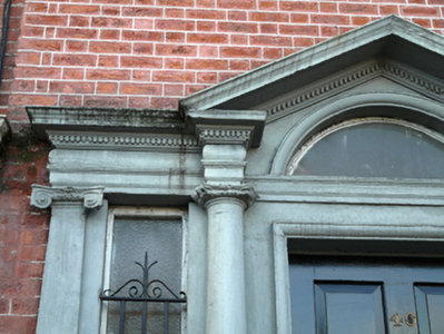 Terraced three-bay four-storey house over exposed basement, built by 1760, as one of pair with No. 41. Now in mixed commercial and residential use. Double-pile slate roof, pitched to front pile with two hipped sections to rear, hidden behind parapet wall with moulded granite parapet cornice and lead hopper and downpipe breaking through to north end with lead brackets. Rendered chimneystack with clay pots to north party wall, spanning front to rear. Red brick walls laid in Flemish bond with recent lime tuck-pointing and moulded granite plinth course over rendered basement walls. Gauged brick flat-arched window openings with patent rendered reveals and painted granite sills, having timber sliding sash windows, nine-over-six pane with wrought-iron balconettes to first floor, replacement one-over-one pane to ground floor, original six-over-six pane to basement with exposed sash boxes, and with replacement uPVC windows to third and second floors. Square-headed door opening within tripartite pedimented painted stone Ionic doorcase. Replacement timber door with moulded architrave surround flanked by engaged Ionic columns (volutes missing), and plain sidelights flanked in turn by Ionic pilasters, columns and pilasters resting on rusticated raised plinth bases, supporting pulvinated and dentillated entablature and entablature blocks supporting open-bed dentillated pediment housing plain fanlight with moulded architrave surround and resting on lintel cornice. Door opens onto sandstone platform and two sandstone steps bridging basement. Platform and basement enclosed by replacement steel railings set on moulded granite plinth wall with steel gates to platform and further gate giving access to basement via steel steps. Commercial brick building to rear, fronting onto Granby Place.